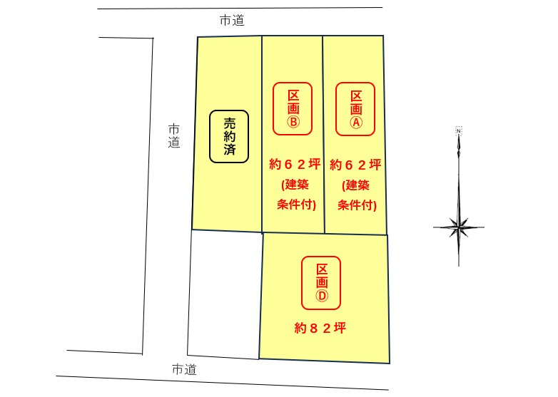 | JR宝塚線 篠山口駅バス14分徒歩3分 | 丹波篠山市西町 | 住宅用地 | 3区画・ⒶⒷⒹ | 205.35㎡ 〜273.06㎡ | ⒶⒷ800万円 Ⓓ900万円 |